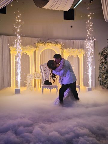 Let us transform your first dance into a truly unique memorable experience that you will talk about with your friends and remember forever. We use a professional low lying fog machine. We use a special fog juice combines with distilled water which is a lot more convenient and lasts longer than a dry ice effect (which lasts about 4-5 minutes).